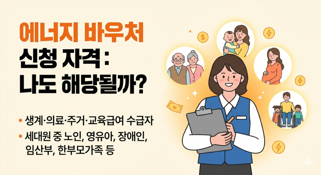 에너지 바우처는 ‘소득 기준’과 ‘세대원 특성’이라는 두 가지 조건을 동시에 충족해야 합니다.